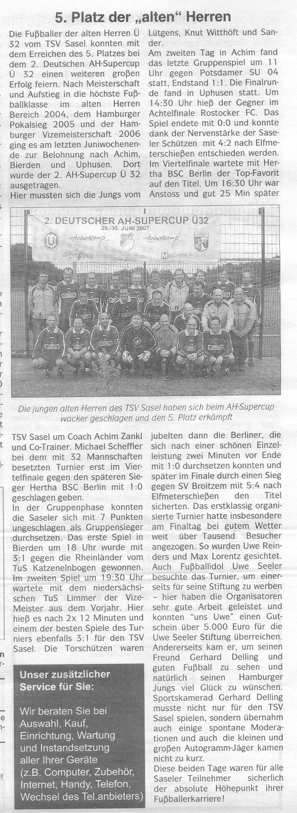 Zeitungs- und Internetberichte über den Ü 32 Supercup in Bremen
